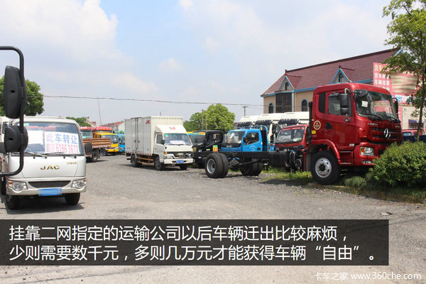在走访中一位卡友给编辑讲述了自己的亲身经历,自己的车辆挂靠在一个二网名下。因为车子是国三的车,在2016年会面临中环限行的困扰,因此想换个国五的车。但是,他在迁出车辆户口的时候却遇到了大麻烦。挂靠公司告知他如果要外迁,需要缴纳3万元的费用,不然不能外迁。要是车辆按照报废车辆处理的话只能三四万元,而当时卡友的车子价值在十万左右,按照报废车辆处理的话就太不值了。最后没办法只能缴纳3万元的外迁费用才把车子迁出。