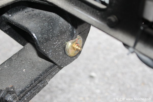 第13、14个黄油嘴,位于前桥钢板前端钢板销轴外侧,左右各一个。润滑不良易导致钢板卷耳衬套磨损。