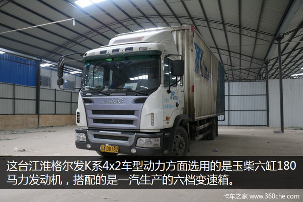 2012年,江淮云南经销商与天天快递开始合作,这两台作为第一批入驻的物流车,动力方面选用的是玉柴六缸180马力发动机,搭配的是一汽生产的六档变速箱。玉柴发动机在西南地区很受欢迎,为了迎合更多用户不同的需求,目前江淮推出的新载货车还可以选装潍柴动力,它的高爆发性能也赢得不少的赞誉。