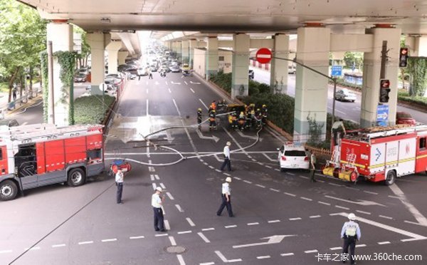 来卡车之家App【卡车之家 原创】7月4日中午12:20左右,一辆车牌号为沪BDX723的黄色江铃皮卡,在延安路地面道路向西行驶至陕西南路路口时发生自燃。事故发生后,约20名消防队员,两台消防车赶到现场迅速实施救援,大约20分钟,明火被扑灭。