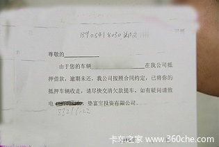 这些车无论是被偷还是被抢,都留下了一张告知函和一张字条,告知函的落款有章丘古城运输公司,字条上则写着:您的车在我公司抵押借款,按照合同约定,将您的抵押车辆收走。而告知函和字条是一家名为垫富宝的公司发出。