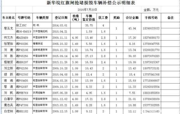 此次补偿分为三部分。第一部分是坠入溃口的卡车的补偿。根据16位司机提供的购车发票,并评估车辆的年限与折旧情况,情况最差的车辆补偿7万元,情况最好的车辆补偿35万元。17辆车(其中一位司机有两辆车)共补偿260多万元。第二部分是司机的误工费。本月10号之后,16名司机无法进行运输工作,县政府按照核载吨位每天分别补助400元至1000元,按40个工作日补贴。第三部分是见义勇为的奖金。16位司机每人奖励1万元。(文/钟丹军)