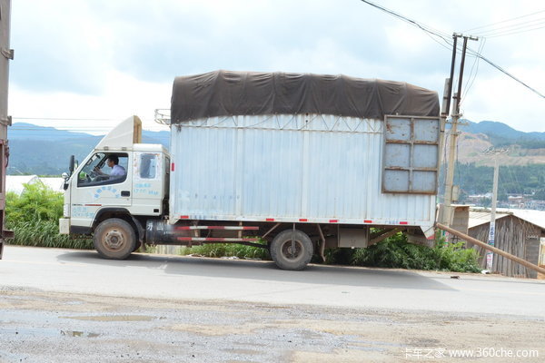 来卡车之家App【卡车之家 原创】在西南山区,经常可以见到这样一种轻卡,他们悬挂着6米车专属的蓝色号牌,却驼了一个比例失调的大车箱。从侧面看去,这些车的后轴位置居然位于货箱中心还要靠前的位置,就像是一个以后桥为轴的大跷跷板。
