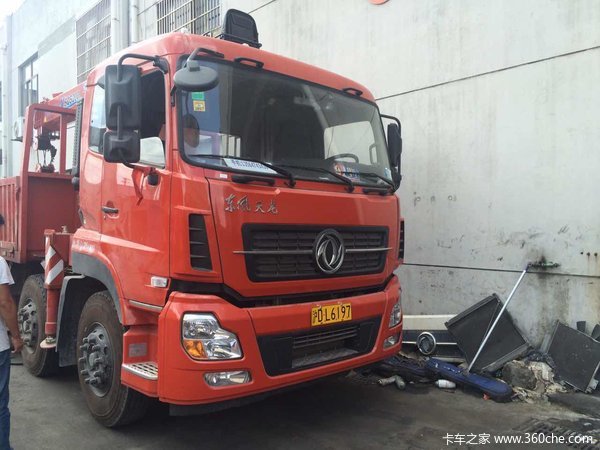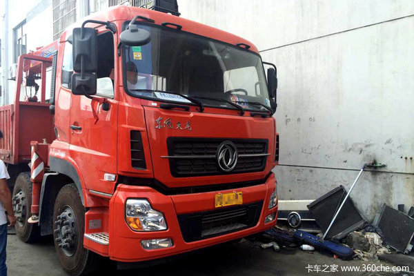 随车吊在港口较多的地方常见,但是上海对重载管控力度大,所以随吊车很不常见。近日笔者在走访上海市场的时候,看到了一辆基于东风天龙底盘改装的随车吊。
