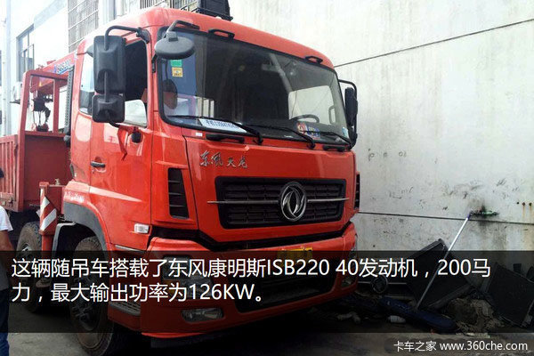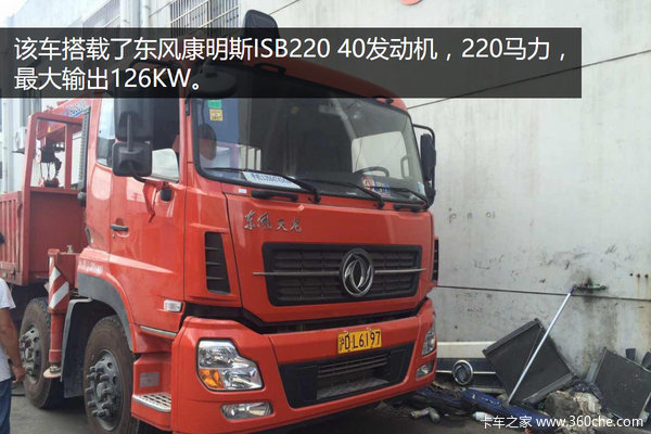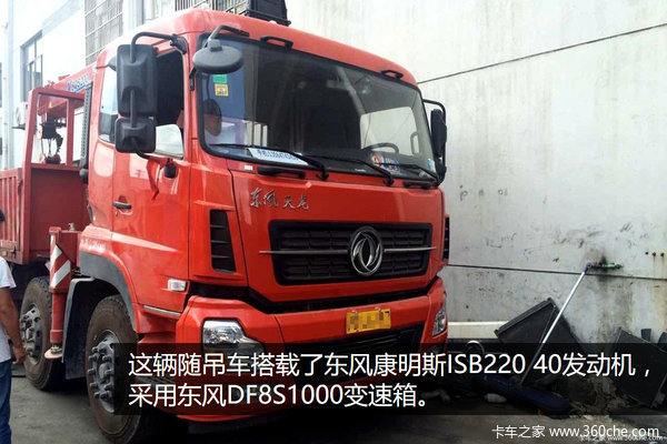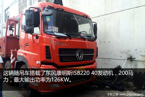 这款车是基于东风天龙底盘改装而来,搭载了东风康明斯ISB220 40发动机,220马力,保证了车辆动力和载重力的需求,重载10吨没问题。与该发动机搭配的是东风DF8S1000变速箱,后桥速比为4.44。