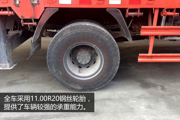 全车采用11.00R20钢丝轮胎,保障了车辆较强的承重能力。