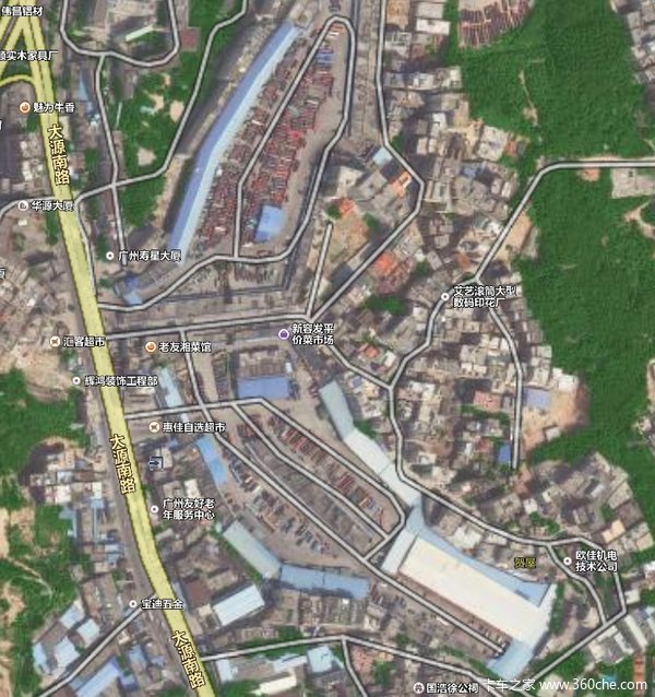 容发货运市场的卫星示意图和地理位置,南区和北区不互通