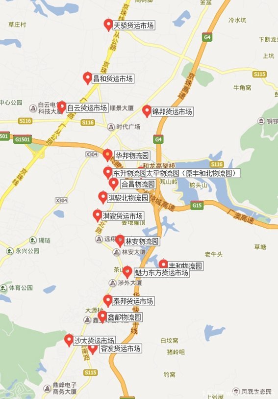 从面积上来看,丰和物流园(丰和南)、林安物流园、华邦物流园、淇骏南、淇骏北、容发货运市场、泰邦货运市场、白云货运市场是其中占地面积比较大的物流园区。里面最出名的当属林安物流园,园内拥有一个大型的物流信息交易中心。