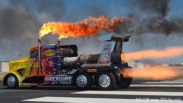 既然是好基友,有好东西就要分享。这辆喷气式卡车就配上3台飞机引擎,最大马力达到恐怖的36000马力,速度超过了日本子弹头列车的速度,堪称世界上最快的飞机引擎动力卡车。能取得这样逆天的成绩好基友飞机功不可没。
