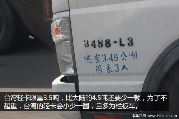 台湾的轻卡的最大总重被限制在3.5吨,所以在路面上我们能看到的轻卡,明显比大陆要小上一圈。不过当地卡车行业人士认为3.5吨的总重对于轻卡来说实在是小了点,他们也希望当地政府能上调总重到5吨或者5.5吨。