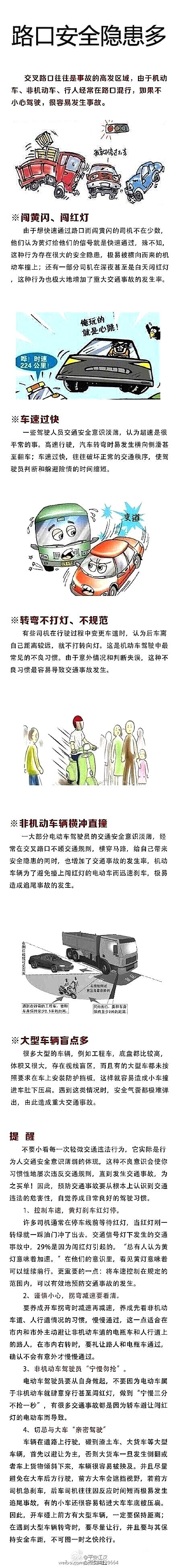 交叉路口往往是事故的高发区,由于机动车、非机动车、行人经常在路口混行,如果不小心驾驶,很容易引发事故。路口抢黄灯、闯红灯、车速过快、转弯不打灯、非机动车横冲直撞、大型车辆视线盲区……这些都会引发交通事故。
