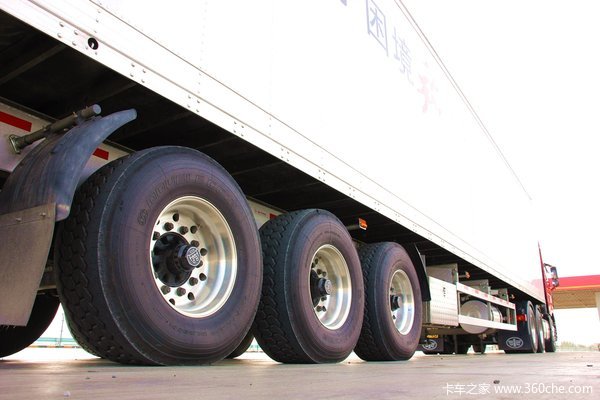 为了降低车辆的高度,他选择了295/80R225的轮胎,相比目前卡车比较常用的12.00R22.5的轮胎,可以降低车辆的高度。因为自己从事的是冷藏运输,经常会运输一些水果,他这辆新车牵引车与挂车全部选择的是气囊悬挂,气囊悬挂具有良好的减震效果,像运输像葡萄这样的货物时心里更有底。