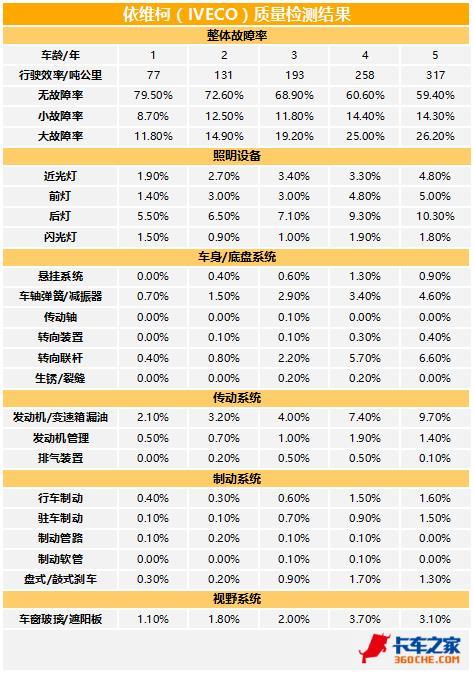 ● 依维柯:和2014年相比问题增多 存在刹车和漏油问题