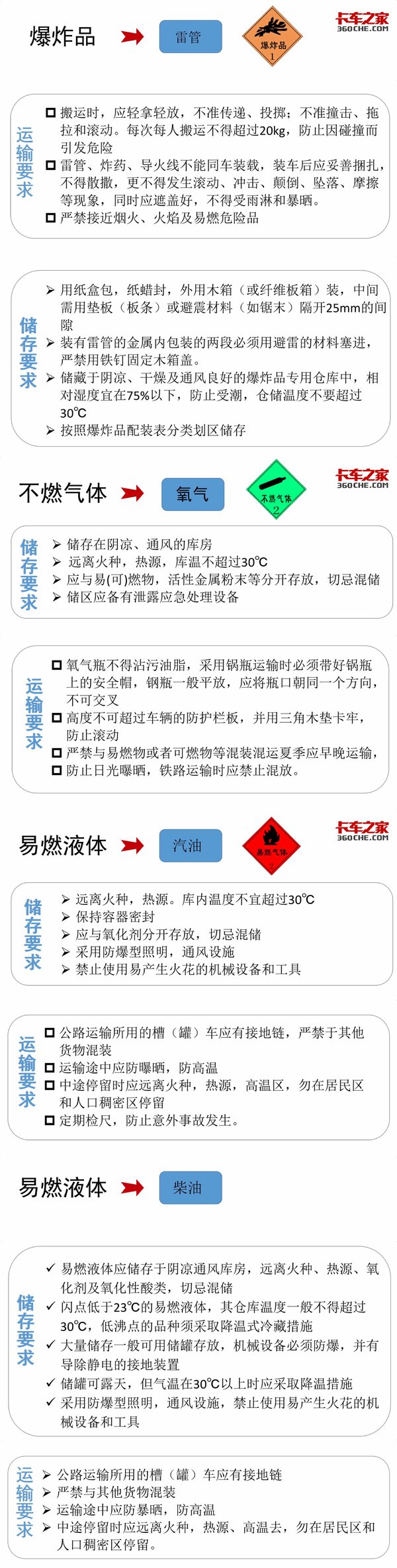 来卡车之家App【卡车之家 原创】危险品货物不同于一般货物,在储存和运输方面都有不同的要求,不了解各类不同危险品的储运要求,很可能会出现一些安全事故。今天就为大家列举一些常见危险化学品的储存和运输要求。