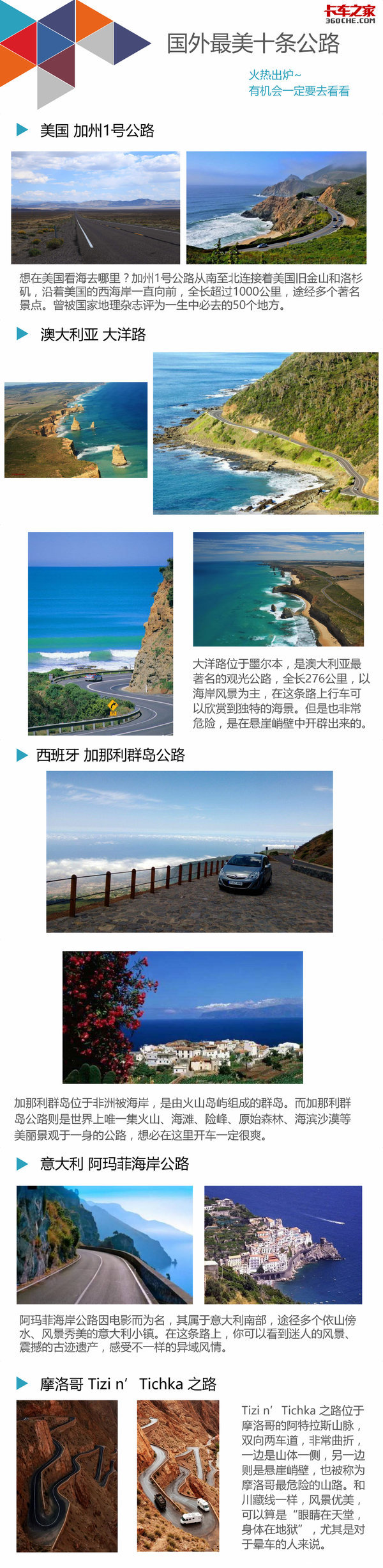 【卡车之家 原创】随着时代的发展,有一部分司机也会选择走出国内,去国外开卡车。在国外开车不仅工资高,而且可以看到不一样的风景。今天笔者就为大家总结出世界十大最美公路,带大家领略一下外面世界的公路。