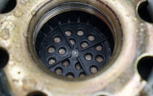 再来看看干燥罐出气孔,均使用了较大直径的孔眼,这种设计乍看之下并没有什么问题,但要使用了较薄的滤纸和更小直径的干燥剂,很容易让车辆气路中,较大的压力将内部干燥剂顶出,直接进入车辆气路,导致气路被堵死,出现安全隐患。