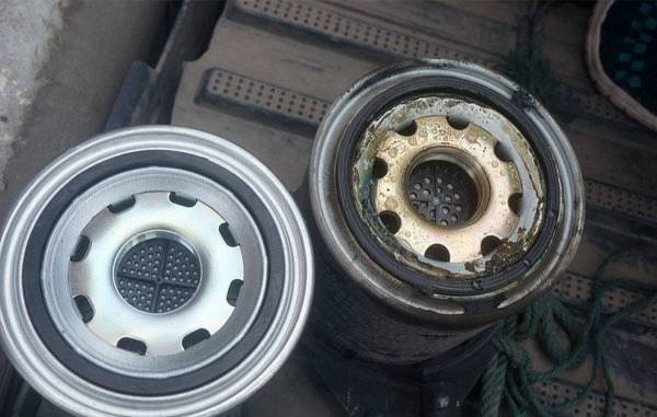 如图这个已经使用一年以后的劣质干燥罐,从外观来看它的底部已经出现一定程度的漏油,说明内部干燥剂早已失效,无法充分吸收水分,让卡车气路中湿气变大,出现冷凝水。