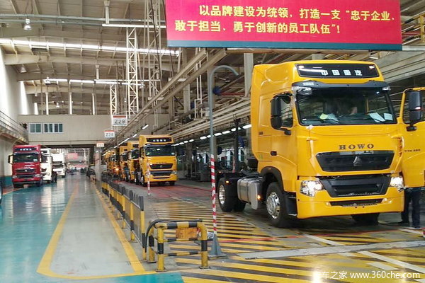 HOWO T7H卡车以出色的性价比力压群雄,获得了韵达快递的大单,定制的配置中包括铝合金轮辋,生产线上等待装配的车轮闪闪发光。