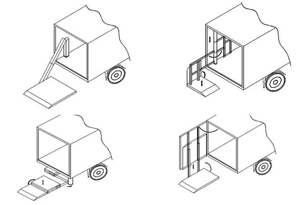 尾板不仅仅只可以加装载车型尾部,包括侧面其实也是可以加装液压尾板的,干哥就曾在电影中看见国外的挂车侧面加装伸缩式的液压尾板,侧面展开时候加上支腿后瞬间化身为舞台车,其实这也就是我们常见的飞翼车的衍生产品。