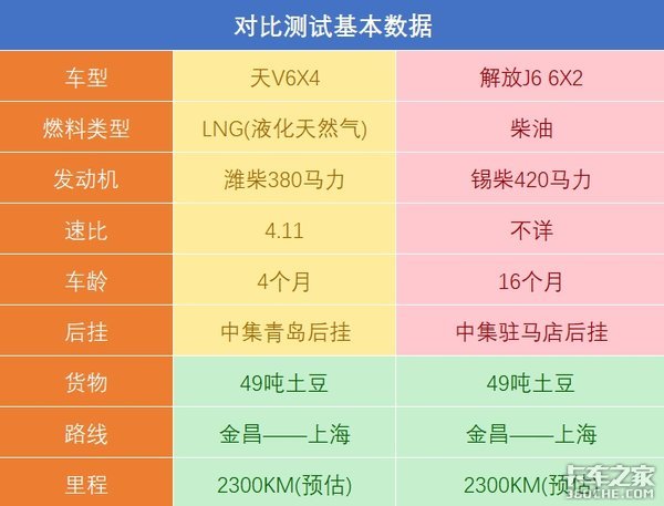 今天刚好和一辆朋友车(驾驶 解放J6 6X2)与二哥(驾驶 天V 6X4)同行,而且刚好有上述的日期,吨位和线路等相同条件,就利用这个机会来探讨一下目前———“柴油VS天然气—每公里之差”!