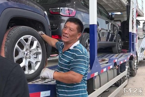 父子俩齐心协力,商品车位置的摆放、固定...一套流程已经如鱼得水,不过中置轴轿运车需要手动操作的环节并不少,所以装配的时间并不短(前后耗时不下一小时)。7月广州已骄阳似火,装车完毕的父子俩早已经汗流浃背,非常不容易。