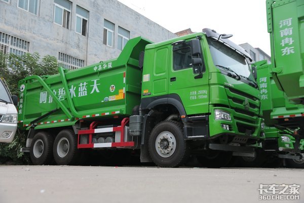 除此之外,从去年7月7日起,所有渣土车货箱需要安装硬质顶盖,不允许使用篷布盖。据介绍,这个盖子单独在外边加装每台车大约需要1-2万元。另外车身必须喷涂成绿色、货箱上还需要有“呵护碧水蓝天”字样——这些经销商都会直接搞定。