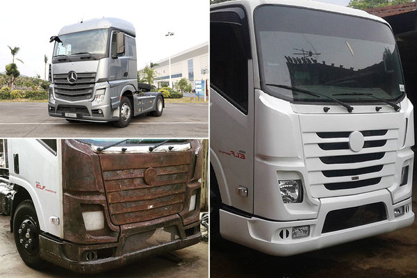 当然了,印尼卡车的个性改装还不止于此,模拟欧洲卡车改装才是最令人称奇的——五十铃轻卡能改成奔驰新Actros;三菱轻卡能改成奔驰新Actros或斯堪尼亚,甚至还有DAF LF的内饰。