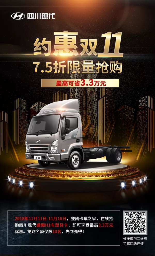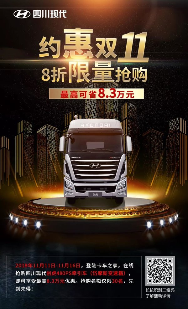 【卡车之家 原创】距离2018年双十一不到一周了,你的购物车填好了吗?你兜里的钱准备好了吗?今年购物节卡家决定联手四川现代“搞点事情”,目的很简单:让卡友省钱!省钱!省钱!