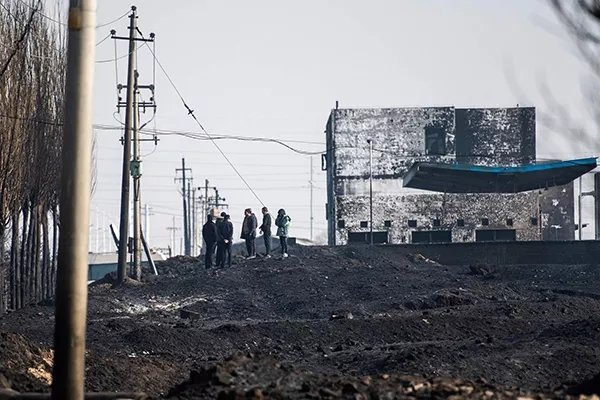 盛华化工内有60兆瓦自备热电厂,耗煤量极大。因此,货车司机往往要排队进厂区卸煤。这些半挂车在盛华化工东门外排起长龙,车多时甚至能排到200多米开外。有时,司机要在这里排队等候两三天才能卸一车货。