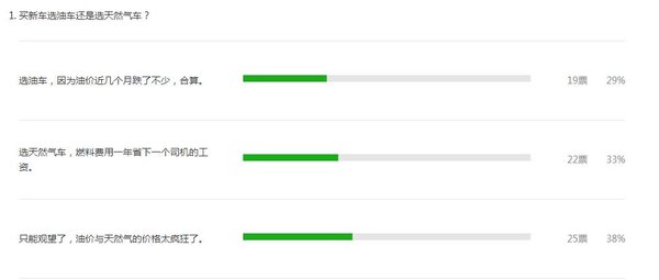 作者最近在网上作了一个简单的调查,大体上有29%的卡友选择加油车,33%的卡友选择加气车,38%的卡友持观望态度,那我们如何正确看待买加气车还是加油车这个问题呢?