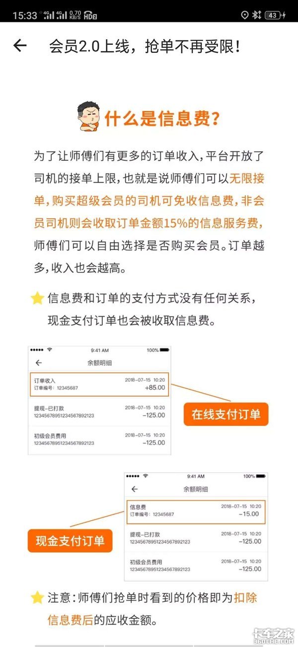 根据卡友的反馈,目前信息费仅限蓝牌轻微卡,开通超级会员可免信息费。中重卡目前还没有会员收费和信息费。当然这也和货拉拉目前的主要司机群体有关。中重型载货车由于货拉拉的运费价格太低,很少有用户接单,所以还没有会员和信息费。