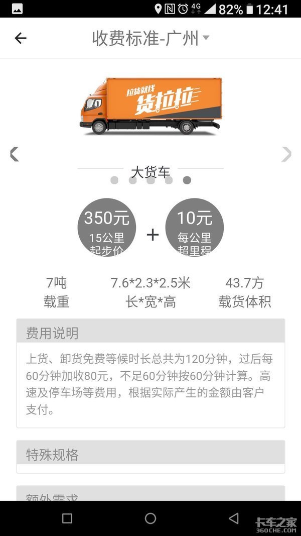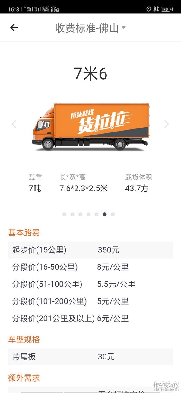 目前货拉拉7米6载货车的计费标准
