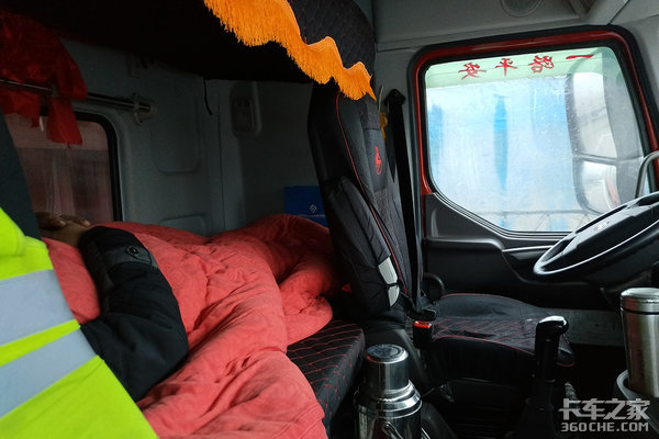 胡哥的车上放置了许多生活物资、零食,甚至还有煮饭的工具,但室内空间还有不少富余,一个人住这么一间高顶平地板的“大房子”真有点奢侈。跟很多个体运输户一样,胡哥驱车不分白天和黑夜,困了就在服务区里睡上几个小时,而且是倒头就能大睡。庆幸的是,他给我留了一个同样宽大的上铺。