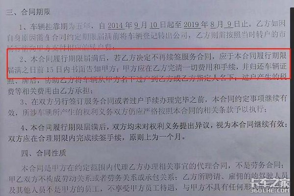 其次是合同问题,卡友在签约时一定要仔细阅读,别相信挂靠公司的口头承诺。没出问题还好,出了事都是以合同为准。合同最后备注,甲方不得以任何方法加收乙方费用、车辆所有权归乙方所有、甲方不得将车辆抵押贷款、若公司法人变更,乙方有权将车辆自由转出等条款。欢迎卡友们在评论区进行补充,方便大家相互学习。