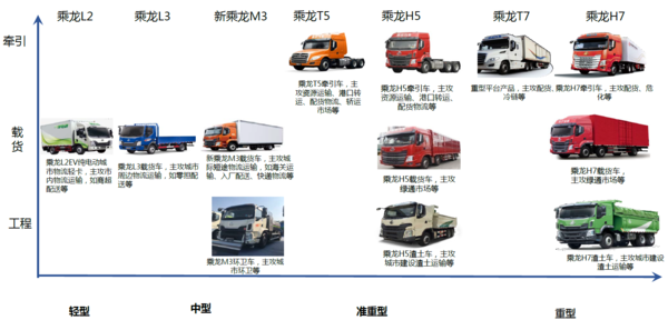 现在的“乘龙汽车”品牌,旗下重型、准重、中型、轻型四大平台1+1双子星布局已然完善——乘龙H7+T7、乘龙H5+T5、新乘龙M3+L3,乘龙L2柴油版+电动版形成高、中端及经济型搭配,组合式进攻商用车主流细分行业,旨在为行业用户带来全新价值体验。值得信赖的平台,细分行业的卡车产品,促使“乘龙汽车”与国内众多快递企业包括京东、顺丰、圆通、中通等均有合作。