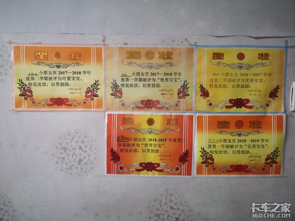 孩子得了满墙的奖状
