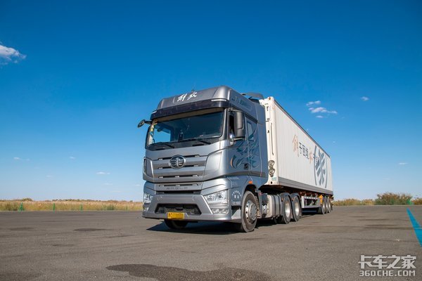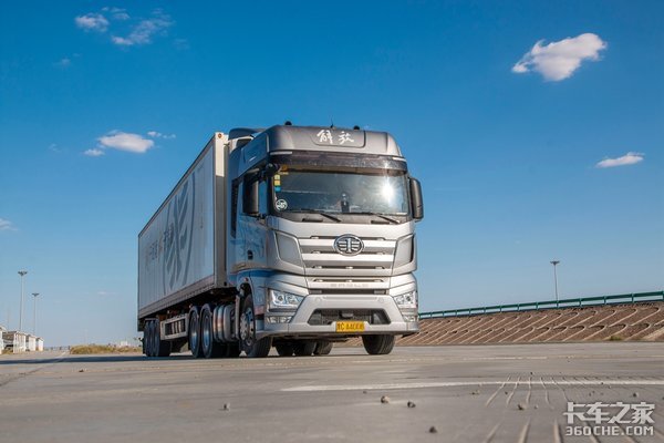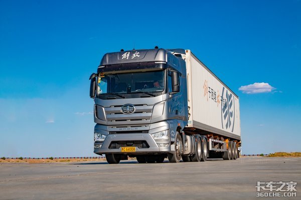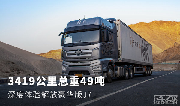 之前我们体验的多为解放J7新车,而且是以单个牵引车为主。这次新疆之旅,J7带挂总重49吨,我们真实到了体验J7在舒适性、经济性、时效性上运营表现,总体来说,J7的表现不错。