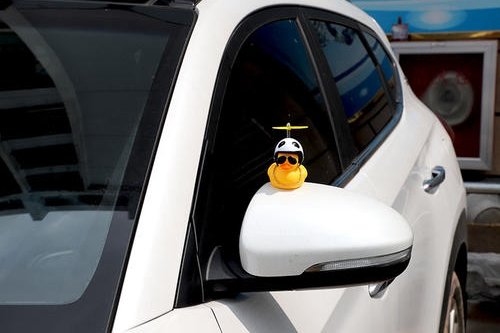 粘置类饰品,这类饰品通常质量较轻,多为玩偶或橡胶制品。最近大火的小黄鸭以及之前红极一时的蜘蛛侠玩偶都属于此类,此类装饰通常通过强力胶等粘合剂与车辆进行连接,固定并不牢靠,易发生脱落危险,对其他车辆产生危险。