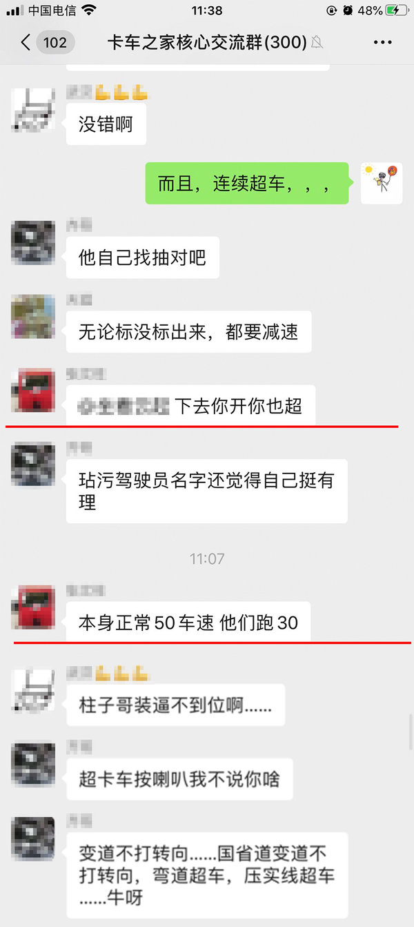 前车速度慢,驾驶技能好,100%的把握等等绝对不是违法驾驶的借口。生命只有一次,别拿自己去赌,更别拿别人的安全去赌,每个人的背后都是家庭,都有家人。非常赞同群里卡友提到的一句话“速度快不是能耐,是你开一辈子车,不出事才是能耐。”安全到达永远比按时到达更重要。(文/霍景春 苟祖胜 图/微信群)