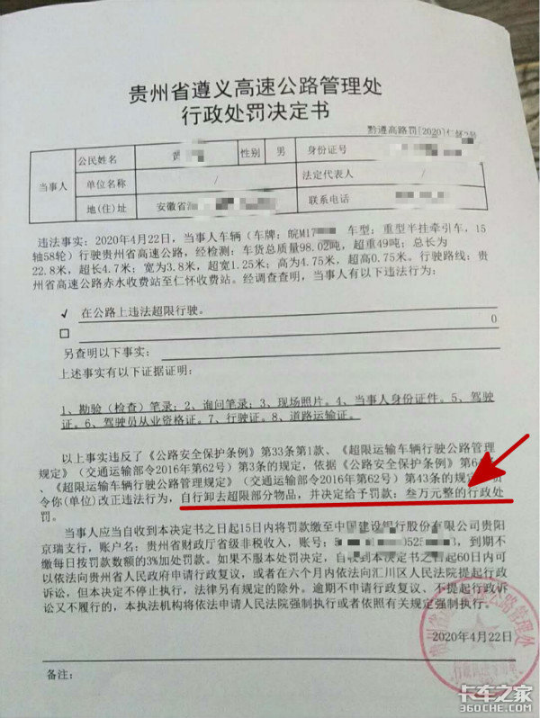 贵州遵义高速管理处给予了这位卡友顶格处罚,但并没有扣押车辆,只需要去银行交罚款就行。