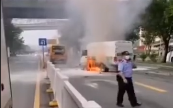 来卡车之家App【卡车之家 原创】太痛心了!电动货车追尾校车,校车上的44名学生没事,但大火瞬间吞噬货车,导致司机当场身亡。