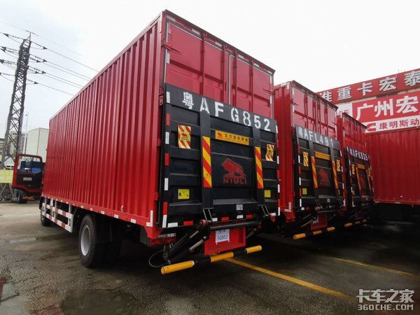 受业务属性的影响,这一批车辆装配了7米8货厢并带有尾板