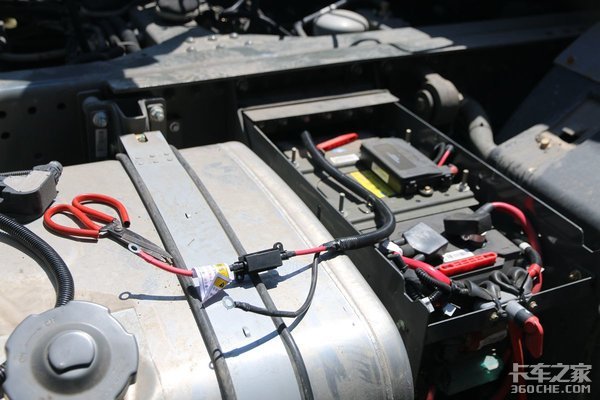 因为是一体式空调没有外机,所以安装师傅只需要进行一下走线就行了,而且空调线路也不多,将其固定在驾驶室后方,以免驾驶途中线路乱跑,另一端是直接连接两块200A/h的车载电瓶。根据厂家说明,它可以连续工作8个小时,并且它还有一个欠压保护功能,就是说在电瓶快没电的时候,它会自动断电,这样就不会影响到车辆正常打火。