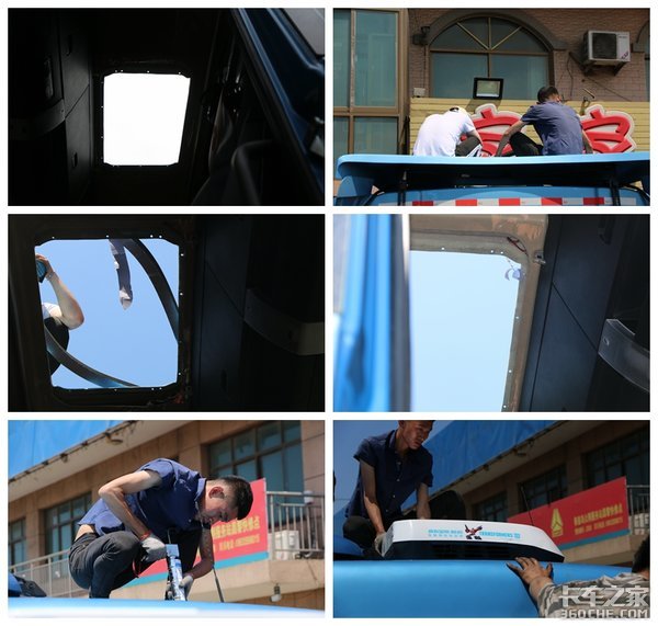 因为有专门的安装师傅,并不需要张师傅自己动手。安装师傅先是将驾驶室的天窗拆除,然后对周围进行一下清理后,就准备安装空调。