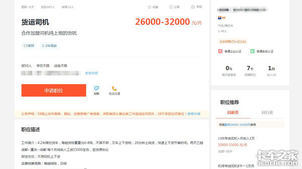 来卡车之家App【卡车之家 原创】运输行业可以说是斗智斗勇的地方,无论你是去买车、挂靠、保养甚至是拉货,都可能面临各种套路,现在好了,连司机找工作都要小心谨慎了。现在物流行业当中出现了一种高薪招聘、买车入职的陷阱,只需C1驾驶证即可,不用长途奔跑,不仅保证货源,每月利润还高达2.7万,这...咋感觉像是在做善事呢?