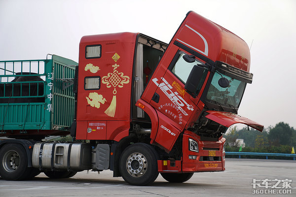 来卡车之家App【卡车之家 原创】年代不同了,社会也在进步,很少有卡友像过去那样自己钻到车底下修车,且道路环境也不像过去那么差,除了常规保养,也很少有机会自己去把车头升起来检查维修,不过常规的车头起升的方式都大同小异,没什么可说的,但是我们今天的主角--解放JH6+生活舱却有很大不同之处,弄不好您还真打不开它!