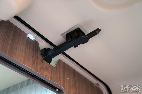 不一样的地方终于来了,在驾驶室顶部,JH6+生活舱有两个锁闭扳手,释放两个扳手后,车头及生活舱区域就算是断开连接了