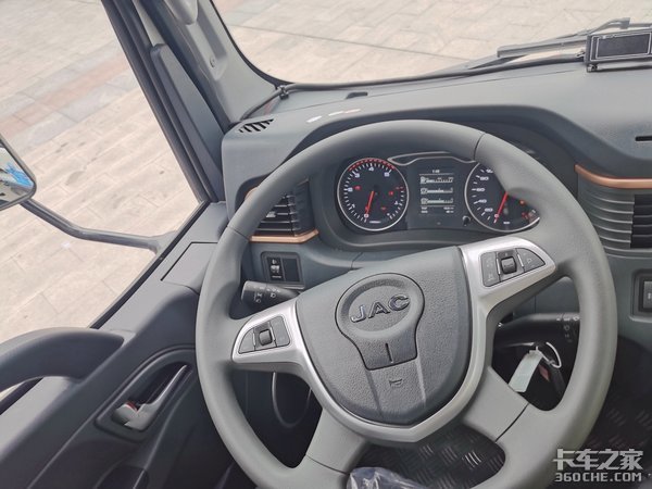 这款骏铃冷博士冷藏车的内饰空间还是很大的,虽然没有该车内饰宽度的具体数据,但这款骏铃V6车型采用宽体驾驶室,宽度超过2米,所以这款实拍车型的内部空间很大。