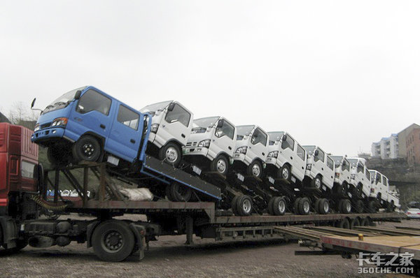 在商用车送车体系当中,背车是比较常见的运输方式。一般来说是由一辆车背着另一辆车,不少运输公司为了进一步节约成本,多赚取运费,一次性背起了多台车辆,甚至被背起的车辆还装了不少货。在快抵达经销商位置时,再把车、货卸下来,然后开过去。