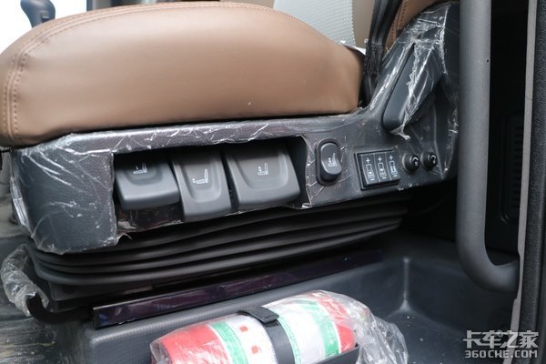 东风天龙KL装配的这款座椅在调节方式以及功能上基本和没有通风加热功能的东风天龙旗舰KX基本相同,唯一不同的可能就是外观方面,一个是采用皮质包裹,一个是采用棉材质包裹。